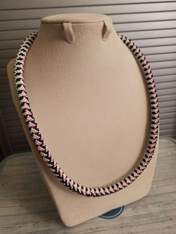 выполнен из чешского бисера,диаметр 1см, длина 65см.