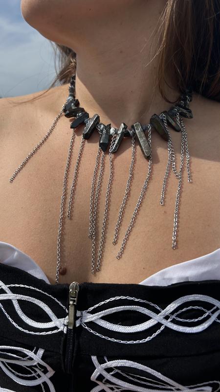 Прикраса з гірського кришталю та ломуїну з ланцюжками з нержавіючої сталі ⛓️ Довжина регулюється від 39 до 43,5 см. Може бути прикрасою на свято та щодень. Заходьте до нас на сторінку, у нас багато різних варіантів прикрас)