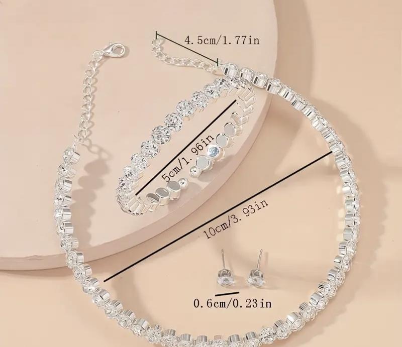 Стильный и модный набор украшений с роскошным блестящим синтетическим цирконом: колье, серьги и браслет для невесты.