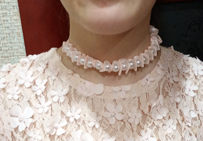 Украшение для шеи выполнено собвеннору из шелковой ленты и искусственных жемчужин (19 жемчужин). Сзади ленты завязываются, поэтому размер шеи для какой-либо. Украшение освежает и украшает одежду и вид вообще. Цвет ленты нежно-розовый. Можно сделать другой цвет ленты, количество жемчужин-за заказом. Пересылаю после оплаты на мою карточку.