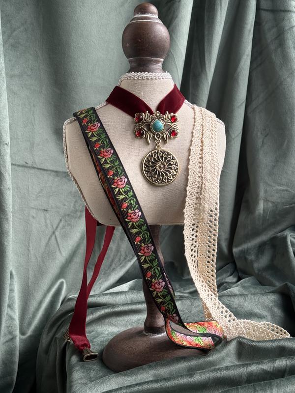 Литво латунь з темнінням, камінці говліт(бірюза), гранатове скло, оксамитова стрічка + стрічка на вибір в подарунок 🎁 кінцевики✨