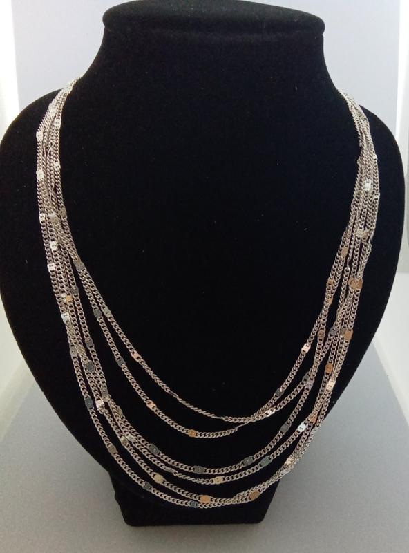 Женское, мягкое колье современного американского бренда ICING. Украшение выполнено из ювелирного сплава серебряного цвета. Длина 52 см, удлинительная цепочка 7 см. Колье очень стильное.