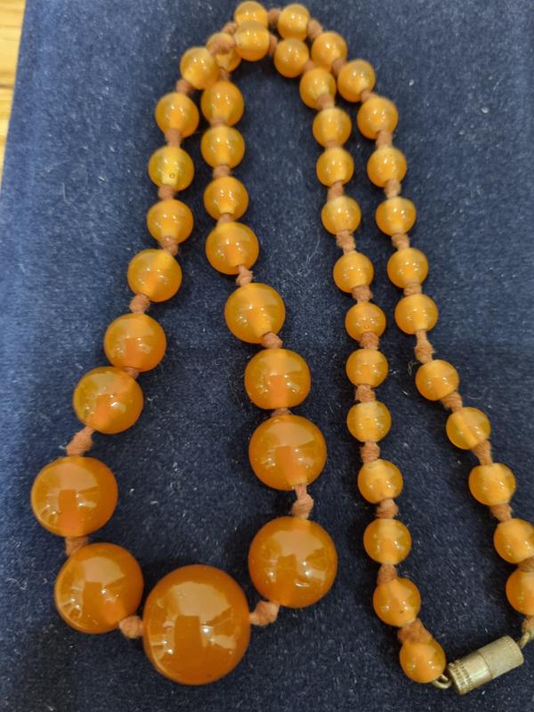 ожерелье винтажное из бусин похожих на янтарь, собранный на шнур через узел.застежка тубус.