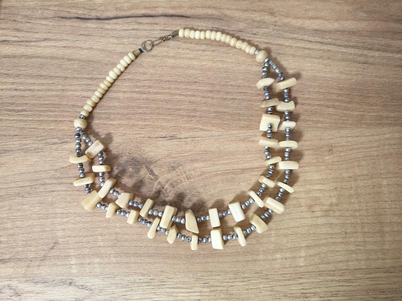 Интересное ожерелье в бохо стиле Метал и кость Длина - 50 см Ширина - 1,5 см (ширина одной нити) Б/у, отличное состояние, незначительные следы использования