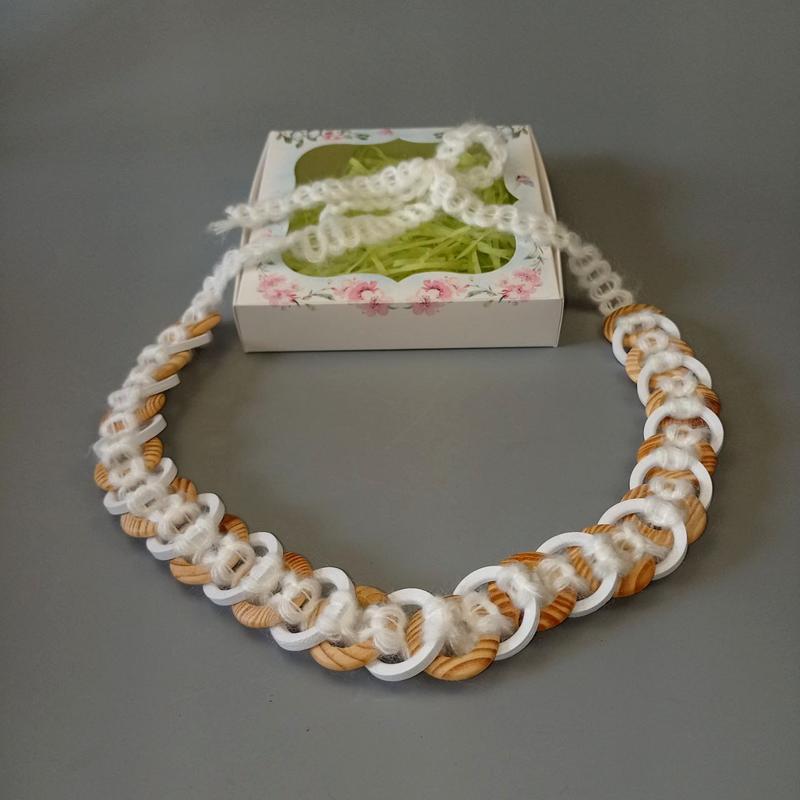 Авторское ожерелье в стиле бохо – это уникальный штрих к вашему образу. Откройте для себя мир свободы, ярких красок и творческого самовыражения с уникальным намыстом ручной работы. Каждое украшение создано с любовью к деталям и сочетает в себе разнообразные материалы, чтобы стать настоящим произведением арт-декора для тела. Высота 40см. Материалы: дерево, вязаная лента. Это украшение идеально подходит к стилю бохо, этно, артистик, кэжуал, а также как яркий акцент в современном минималистичном образе. Универсальный размер позволяет легко регулировать длину, чтобы носить ожерелье так, как удобно именно вам. Ожерелье отправляется в праздничной подарочной коробочке – готовый подарок для себя или для особого человека. Носите с удовольствием, ведь это не просто украшение – это настроение, характер и свобода быть собой 🌿✨