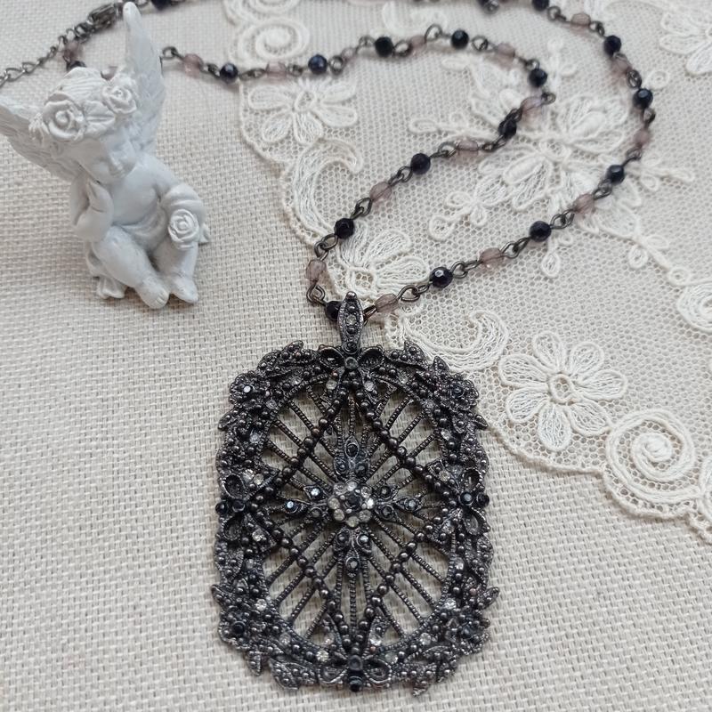 Ожерелье , металл, кристаллы. Размер кулона 4.5си * 5.5см, длина цепочки 47 см. Состояние отличное.