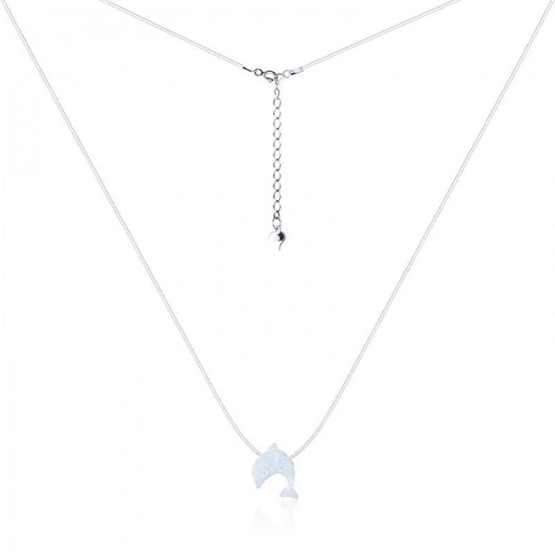 Колье серебряное с опалом Дельфин Серебро 925 пробы Покрытие родий Размер 37 см + 5 см Вставка опал