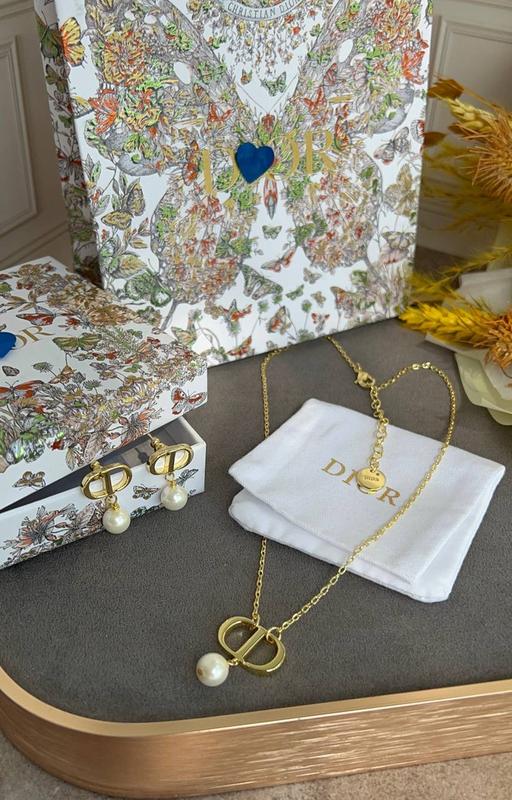 Ніжний та Стильний Комплект від Діор🤍 Преміум Якості 🔝 Всі лого та гравіювання 🔥🔥🔥 🏷️Сережки-2090грн 🏷️Кольє-2190грн 🛍️Додатково можна Придбати Пакування бренду