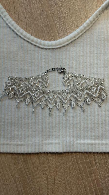 Эта изящная силянка выполнена вручную из качественного чешского бисера Preciosa в технике силения. Кружевной узор с белыми и серебристыми акцентами создает легкий, элегантный образ, который подойдет как к праздничному платью, так и к лаконичному повседневному наряду. Длина основания - 30 см Цепочка-регулятор – 5 см (можно заменить на завязки из нитей) В наличии, дефектов нет Возможно изготовление украшений под заказ. (с заменой цвета при необходимости) Пишите в сообщения, чтобы узнать детали доставки и оплаты.