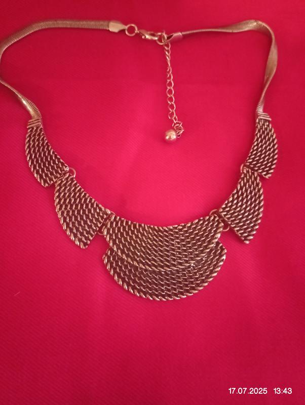 качественное колье, выглядит просто шикарно....подойдет под дорогой образ. нестандартная, плоская цепочка выглядит как серебро.48 см+ 10 удлинитель) смотрите другие коле в моей Шаффе..🌹🌹🌹