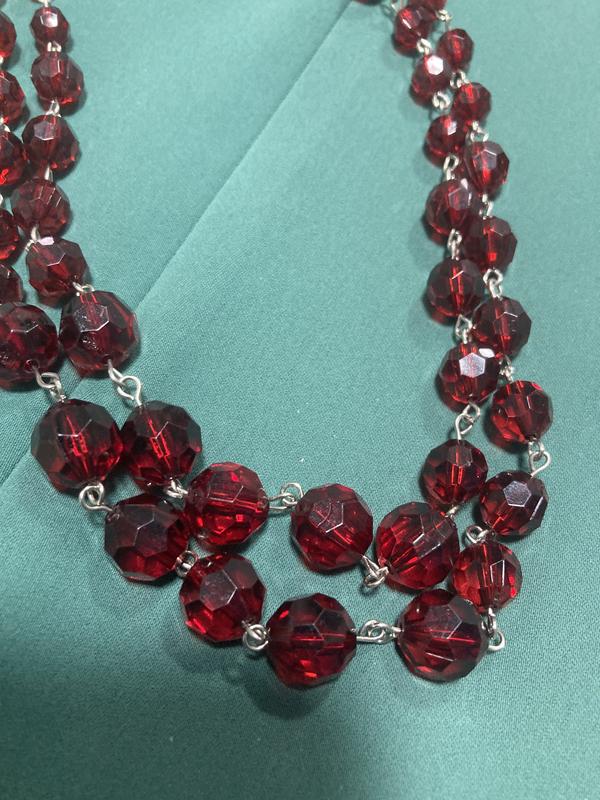 Колье из люцитовых бусин собранных на пинах двухрядное длина 60+7см