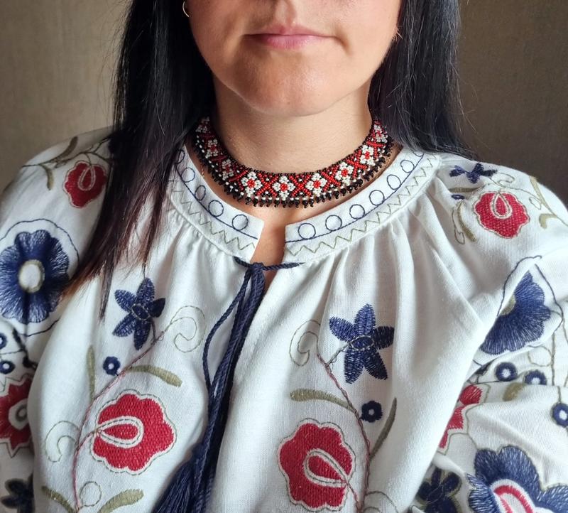 Украинская силянка в традиционных цветах: черный, бежевый, темно красный матовый. Изготовлена из качественных материалов: 🔸️чешского бисера; 🔸️ хрусталь; 🔸️застежка из нержавеющей стали. Длина с застежкой - 36 см + 7 си цепочка удлинитель. Если нужно другой размер напишите об этом при заказе. В данном случае время изготовления 2-3 рабочие дни.