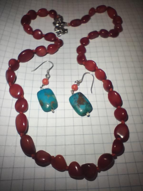 набор из натуральных камней серьги и бусы, ручная работа. винтаж. серьги швензы из серебра 925 пробы, камни предположительно коралл и бирюза или хризоколла (?). бусы точно не знаю коралл или другие водоросли или крашенный натуральный камень(?). состояние на фото. полная оплата на карту!