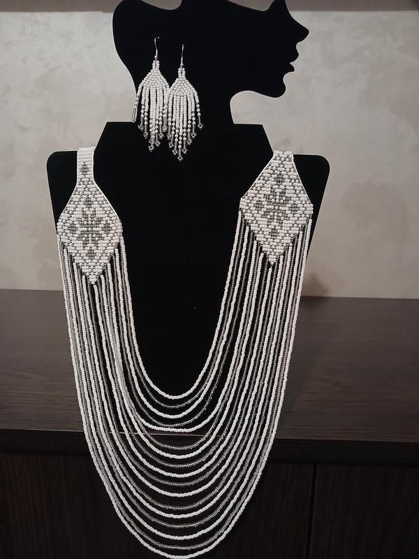 Гердан с серьгами из чешского бисера под заказ. Длина серег 6см+швенза