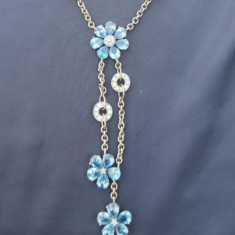 Колье из серебра 925 пробы. Вставки - голубой и прозрачный цирконий. Длина - 40 см. Видеообзор способен отправить в любой удобный для Вас мессенджер.