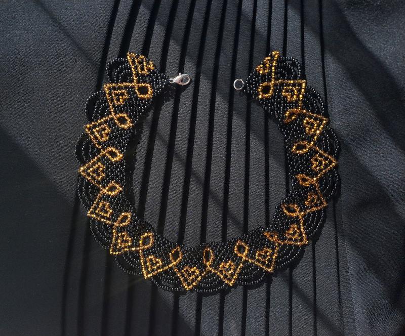 К вашему вниманию - невероятно силянка, соединившая в себе глубокий черный и блестящее золото.🖤 Материал - чешский бисер. Возможно исполнение в других цветах и изменение застежки👌🏻