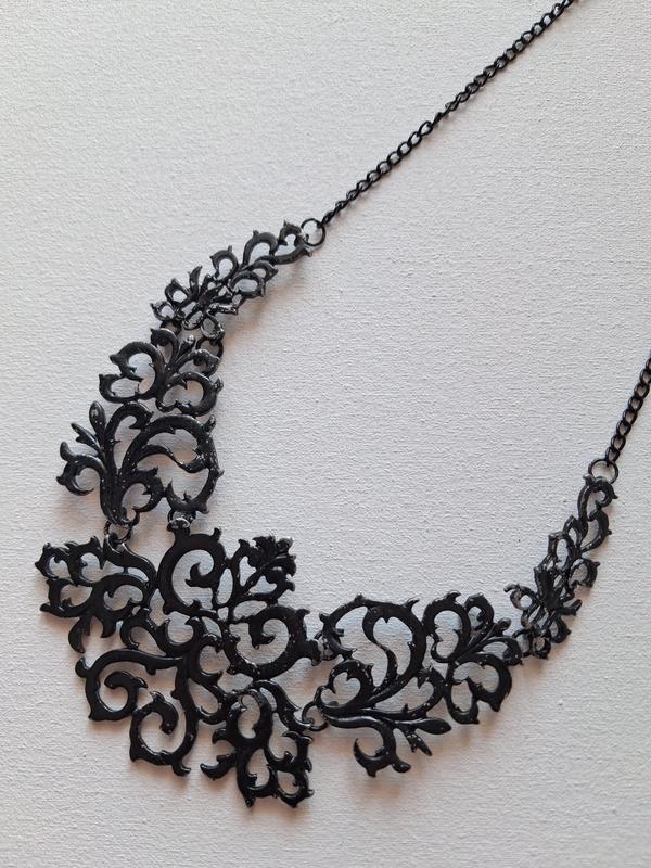 Колье с цветочным узором. Эффекты видны на фото - местами стерлось покрытие. Длина цепочки около 34 см, регулируется