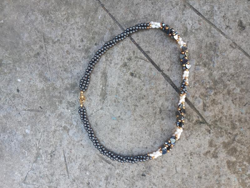 Винтажная подвеска колье из серого и белого жемчуга