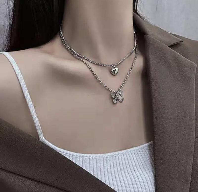 Акция! БЕСПРОВОДНАЯ ДОСТАВКА заказов бижутерии на сумму от 1000 грн. (до отделения почты или поштомат) 😉 Акция действует при оплате на карту Стильное актуальное трендовое украшение, одно из цепочек с камушками. Кулон сердце и бабочка. Длина короткой цепочки - 42 см плюс удлинитель 7 см