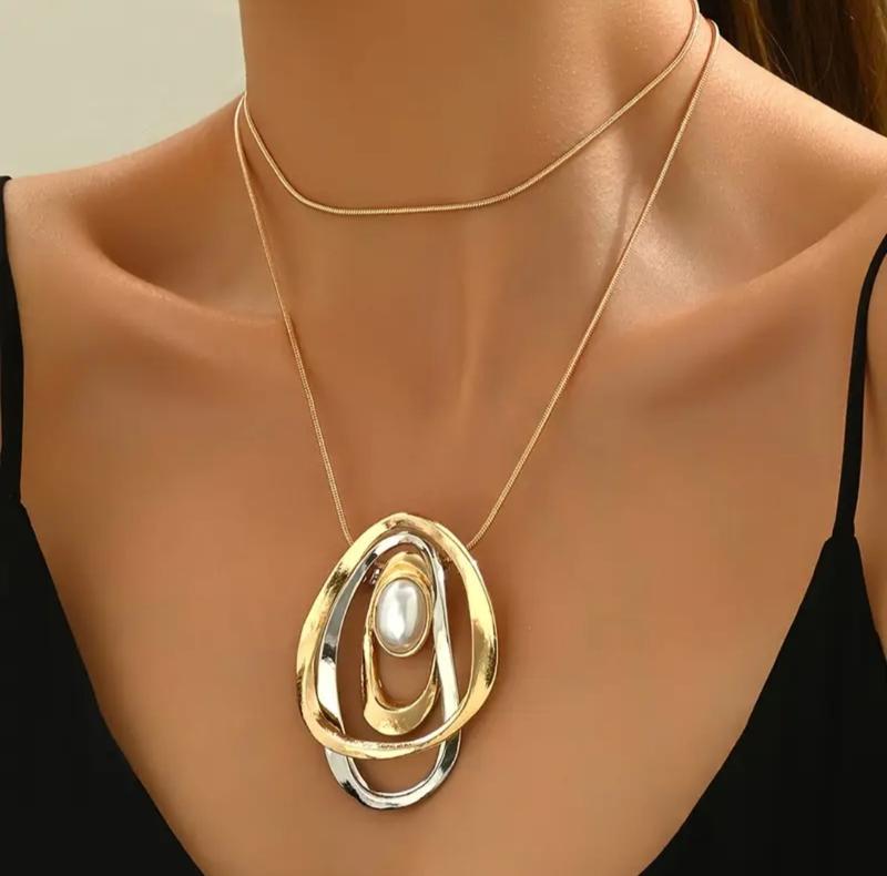 Елегантне та просте намисто-підвіска з сплаву з геометричним багатошаровим дизайном та акриловою перлиною - без покриття, ідеально підходить для повсякденного носіння