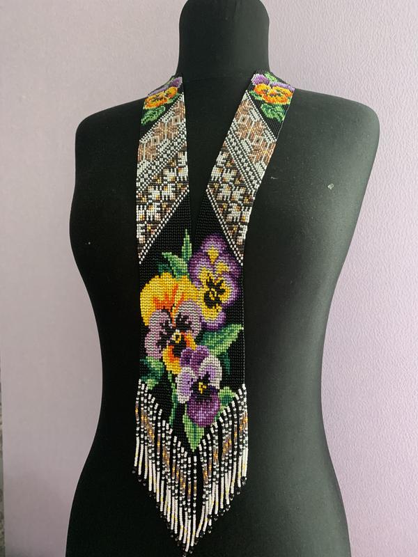 Виконаний з чеського бісеру за авторською схемою. Довжина —59, ширина- 8,5 см.