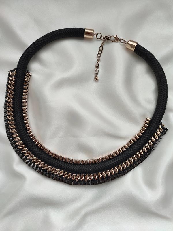 Кольe чокер H&M. Черный джгут шнурок, метал графитовый и золотистый Длина от 42-до 48см максимально. Ширина 2.3см. Все в идеале, только чуть потемнела сама застежка с удлинителем