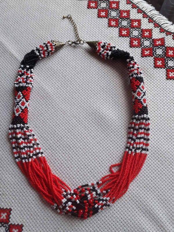 Етно намисто. Длина с карабином 55см.плюс удлинительная цепочка 5 см. Фурнитура бронза. Изготовлено из чешского бисера и бусин.