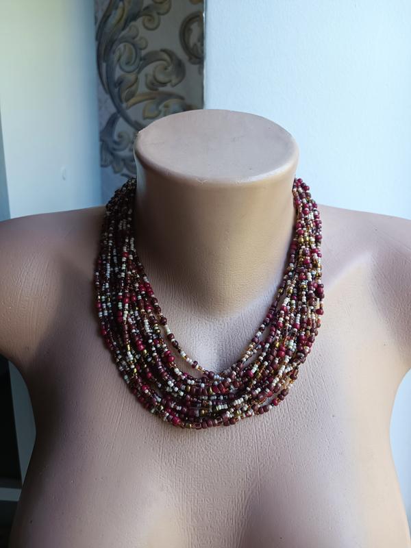 Колье из бисера коричневого цвета. Длина регулируется.
