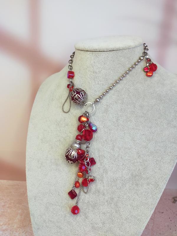 Колье красное, жемчужины