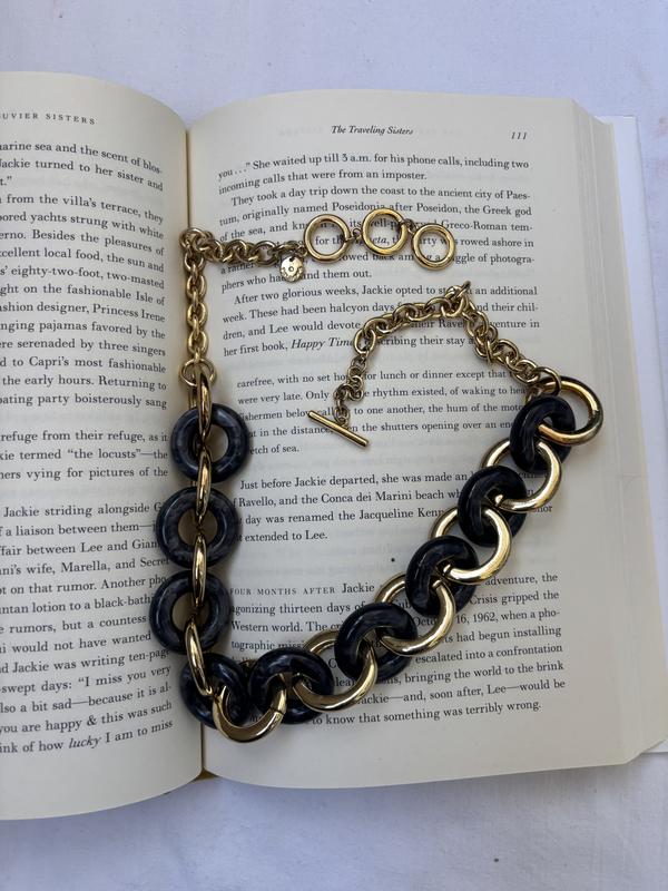 Кольє Talbots-850📮 Стильне масивне кольє довжиною 59 см (регулюється на зменшення). Складається з великих ланок у поєднанні чорного глянцевого акрилу та металу золотистого відтінку. Завдяки контрасту кольорів прикраса виглядає ефектно й сучасно, підходить як до повсякденних образів, так і для святкових виходів❣️