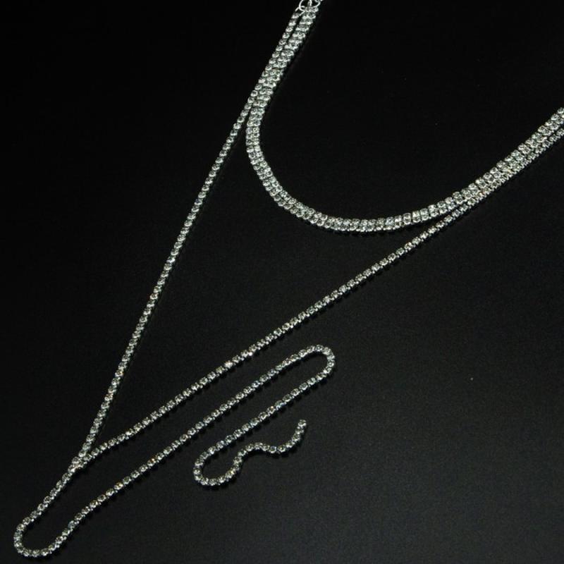 Колье №2 из двух рядов белых страз с удлиненной висюлькой из двух рядов свадебные украшения купить