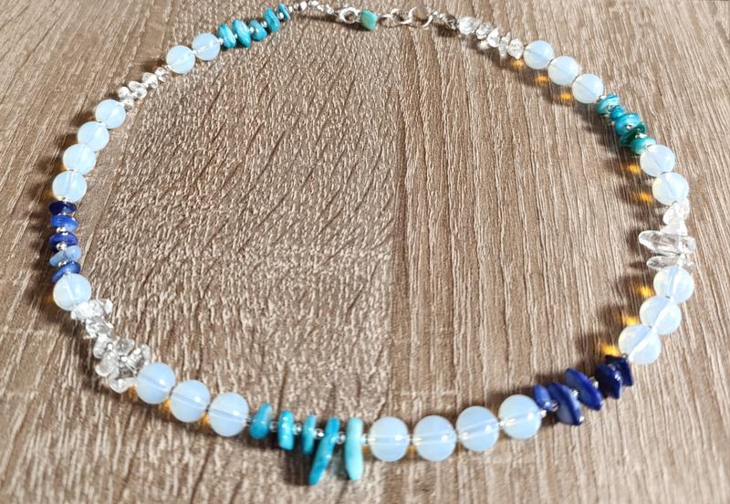 Колье из натуральных камней - опал, морской перламутр и горный хрусталь. Размер 42-44 см.