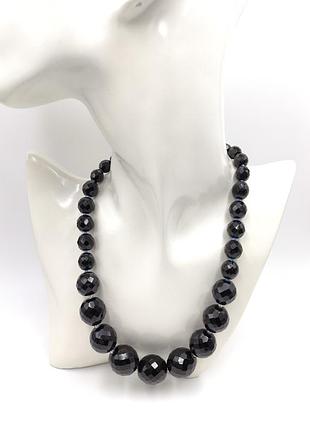 Вінтажні намистини грановане чорне скло. Гарна класика! Стан б/у. добре, є мінімальні сліди використання. Приблизна довжина виробу 54 см.