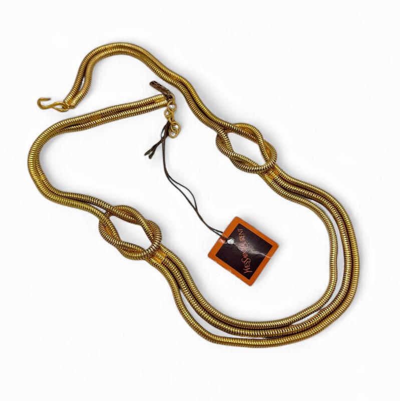 Колье Yves Saint Laurent, 70-е годы. Редкий экземпляр. 🔹Из сплава металла. Позолочено. Плетение снейк. 🔹 С родной биркой. Идеальное состояние. 🔹Длина 60-63 см.