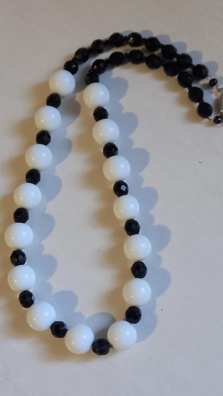 винтажное черно белое ожерелье,крупные 15мм бусины молочного стекла, граненые бусины из черного стекла,всегда актуальные, также смотрите другие Мои товары, украшения много на любимый вкус и кошелек