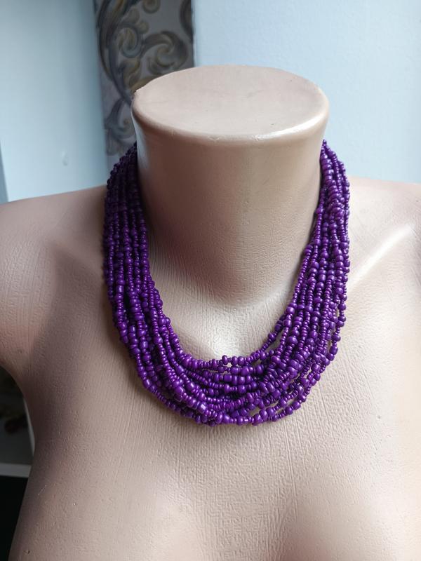 Ожерелье из бисера, фиолетовое. Длина регулируется.