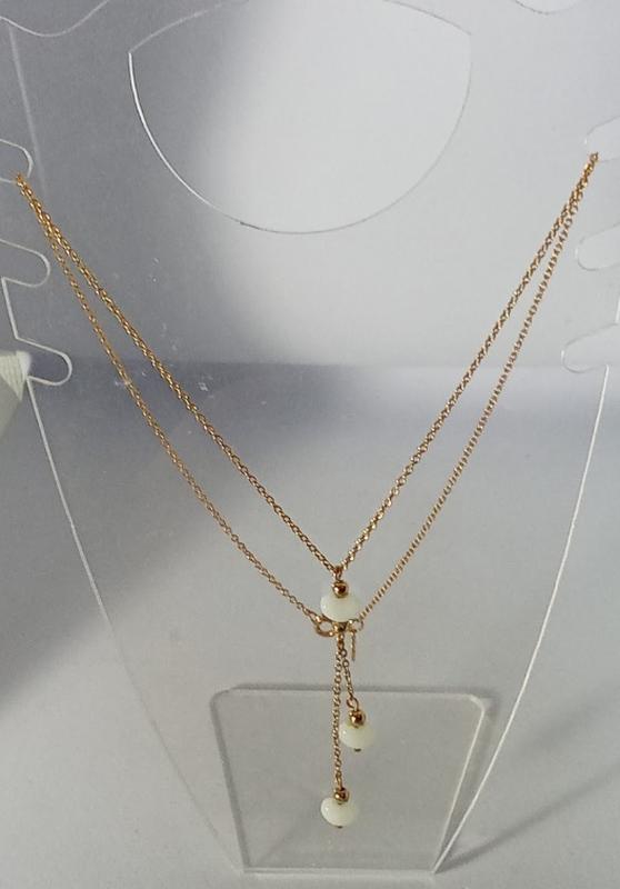 Колье от американской компании Avon. Украшение выполнено из ювелирного сплава золотого цвета. Вставки белый пластик. Общая длина колье 55 см.