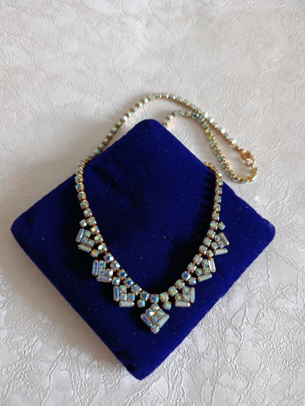 Винтажное стильное колье с кристаллами авророро бореалис, длина 40 см. Кристаллы все присутствующие.Оплата на карту. Обмену нет.
