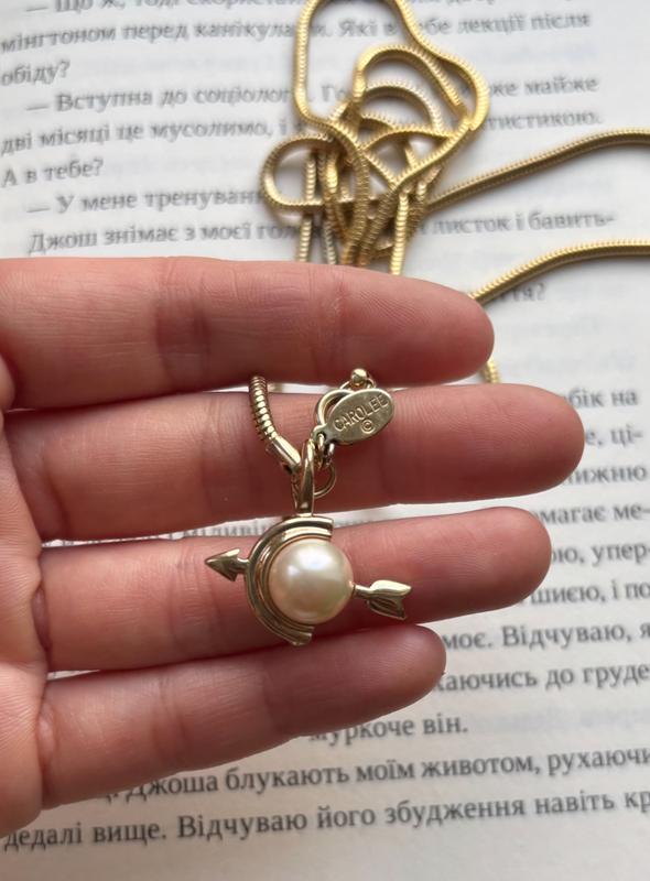 ❤️carolee -1550📮 Комбінація золотистого металу та великої перлини робить його класичним, а мотив "стріли Купідона" додає романтичного шарму. Завдяки довжині 94 см, його можна носити поверх светрів або суконь як центральний акцент❣️ На невеликій овальній або прямокутній бірочці (тегу), прикріпленій біля застібки ланцюжка, чітко видно назву бренду "CAROLEE". Це підтверджує походження прикраси від американської компанії, яка спеціалізується на високоякісній біжутерії, часто наслідуючий дизайн ювелірних виробів❣️