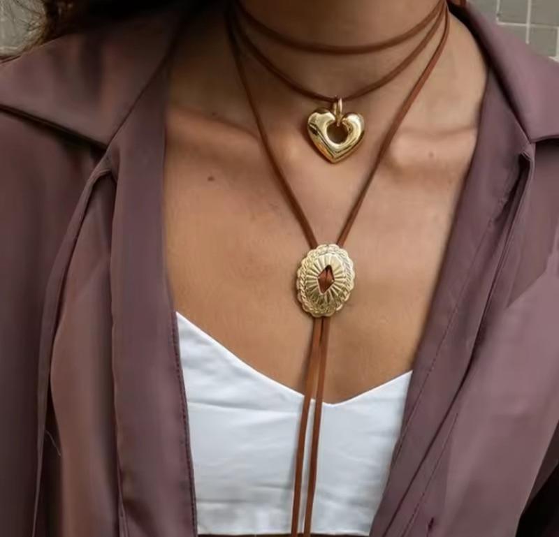 Колье бохо коричневый шнурок на шею искусственная замша ожерелье бусы сердце сердечко куло...