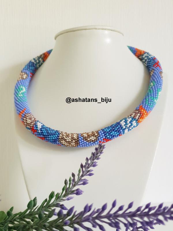 Жгут связан крючком из чешского бисера No10 на хлопковой ниточке. В палитре использовано 12 цветов бисера. Длина 46см. Фурнитура: металл, цвет-серебро, замок- магнитный.