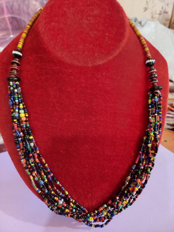 ожерелье ручной работы, бисер, стеклянные бусины и кокос (?)