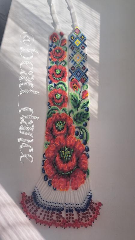 Гердан "Маки петриковка" Изготовлена из чешского бисера по схеме Чернишевая Светлана Ручное ткачество Длина 60 см Ширина 8,5см, 4,5 см.