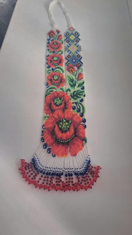 Гердан "Маки петриковка" Изготовлена из чешского бисера по схеме Чернишевая Светлана Ручное ткачество Длина 60 см Ширина 8,5см, 4,5 см.