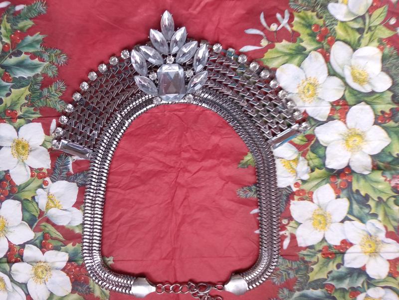 Колье серебристое с камнями из стекла.Размер ширина 18 и длина 21см