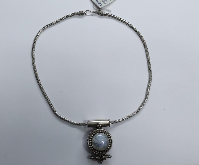 Серебряное колье, 925 проба, длина 46 см, вес 68,86 грамм, клеймо есть, цветок отсутствует,вставка лунный камень К482