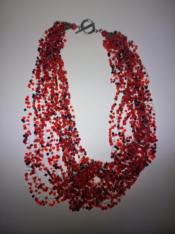 Нарядное украшение выполнено из бисера, нанизанного на тоненькую леску, в этническом стиле. Есть немножко потертостей на бусинах у застежки (фото 5). Длина 46 см.