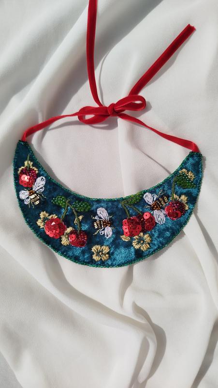 Бархатная основа, бисер и лелетки✨ Такого точно ни у кого не будет Длина - 16см, ширина - 6см, длина лент - по 26см