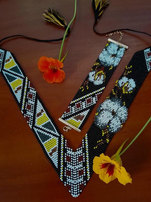 Угловой гердан с браслетом из чешского бисера