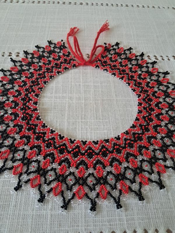 Силка из чешского бисера. Длина украшения 39 см, ширина 6 см. Размер регулируется завязками.
